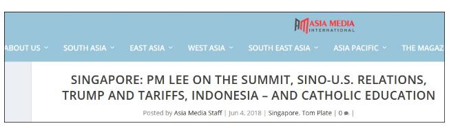 6月4日,美国玛丽蒙特大学亚洲媒体中心旗下的一份学生刊物放出了他们在上个月对新加坡总理李显龙的专访,除了即将到来的特金会,李显龙还在专访中多次提到了中美。比如,中美不同的发展道路、中美的行为模式、中国制造2025等。