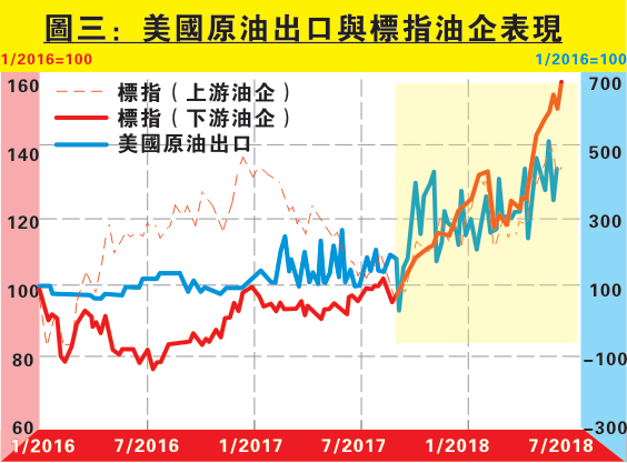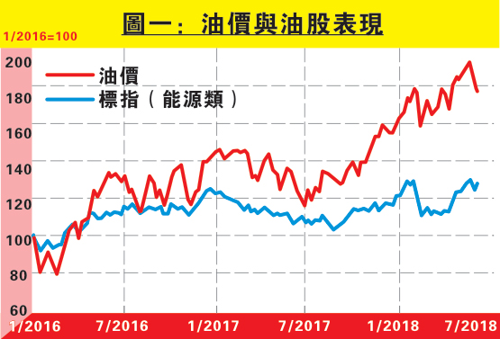 在這前提下,相信不少投資者會看好油股前景。如圖一顯示,油價自2016年初見升浪,至今增長高達八成,而標指能源類表現也見升幅但較為落後,只有兩成,現再高追入市似乎獲利空間不大。