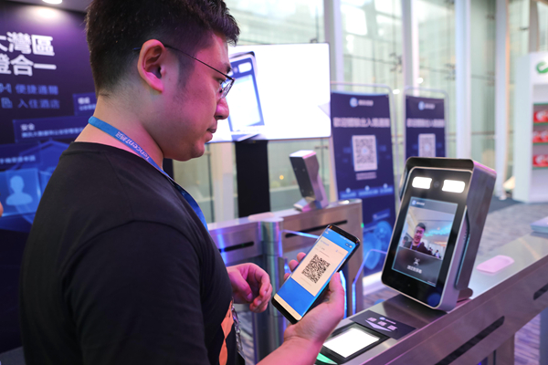 工作人員演示使用騰訊E證通實現便捷掃碼通關。中新社