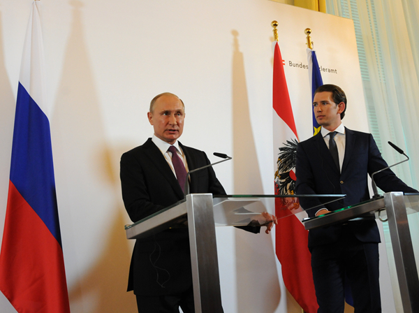在維也納,普京與奧地利總理庫爾茨(右)舉行了會談。 路透社