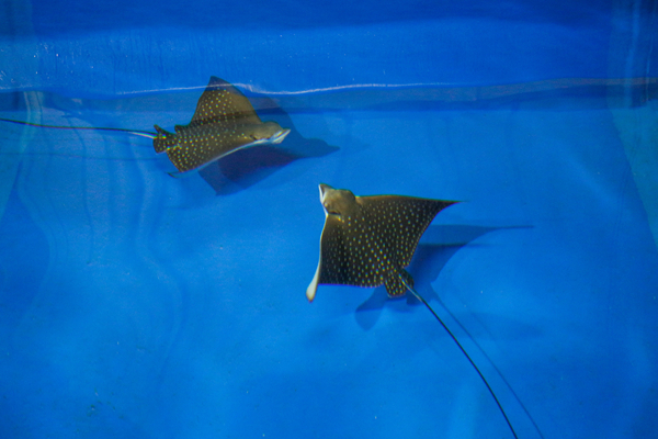 海洋公園於2009年由鹿兒島引入3條俗稱「魔鬼魚」的鷹鯆、兩雄一雌,現年約10歲。該3條鷹鯆於去年性成熟后在4月進行交配,結果雌性鷹鯆成功於今年1月6日誕下首次於香港出生的2隻鷹鯆寶寶,牠們分別是名為「波波」的雄性、以及名為「點點」的雌性。2條鷹鯆寶寶現居於海洋公園的后勤地帶,并接受護理訓練,以便牠們日后可自願配合護理員及獸醫團隊的餵飼和身體檢查,并鞏固動物與護理員之互信關系,提高醫療護理的效率。