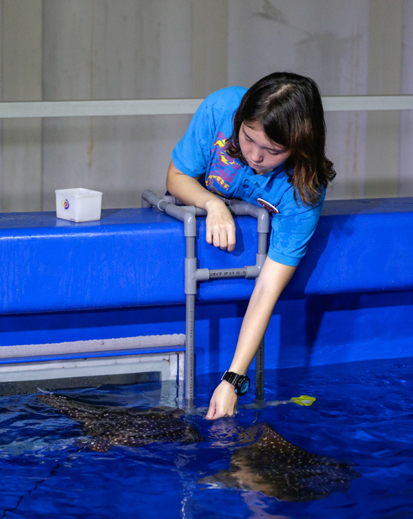 她解釋,現時正進行的訓練為目標訓練,2條「鷹鯆BB」各有一指定形狀目標,當牠們成功識別并觸碰相應目標,便可獲得獎勵,而此為「正面獎勵」訓練方式,以赞賞鼓勵及強化期望行為。她指,鷹鯆寶寶預計於今年第4季在海洋奇觀展區與游人見面,又呼吁大家在館內切勿使用閃光燈拍照,以及不要做大動作,因牠們對這些行為較為敏感。