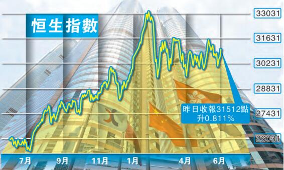意大利及西班牙政局自上周末起暫轉穩定,市場對歐債危機重燃的憂慮紓緩,環球金融市場避險情緒明顯降溫。美國勞工部上周五發布的5月就業市場數據增加投資人對美國經濟基礎強化的信心,配合市場普遍對美國企業盈利前景樂觀,不單支撐美股表現,亦促進部分資金開始回流港股的意欲。此外,人民銀行釋放出穩定市場流動性信號,預期有助恒指短期內反覆上試32000大關。