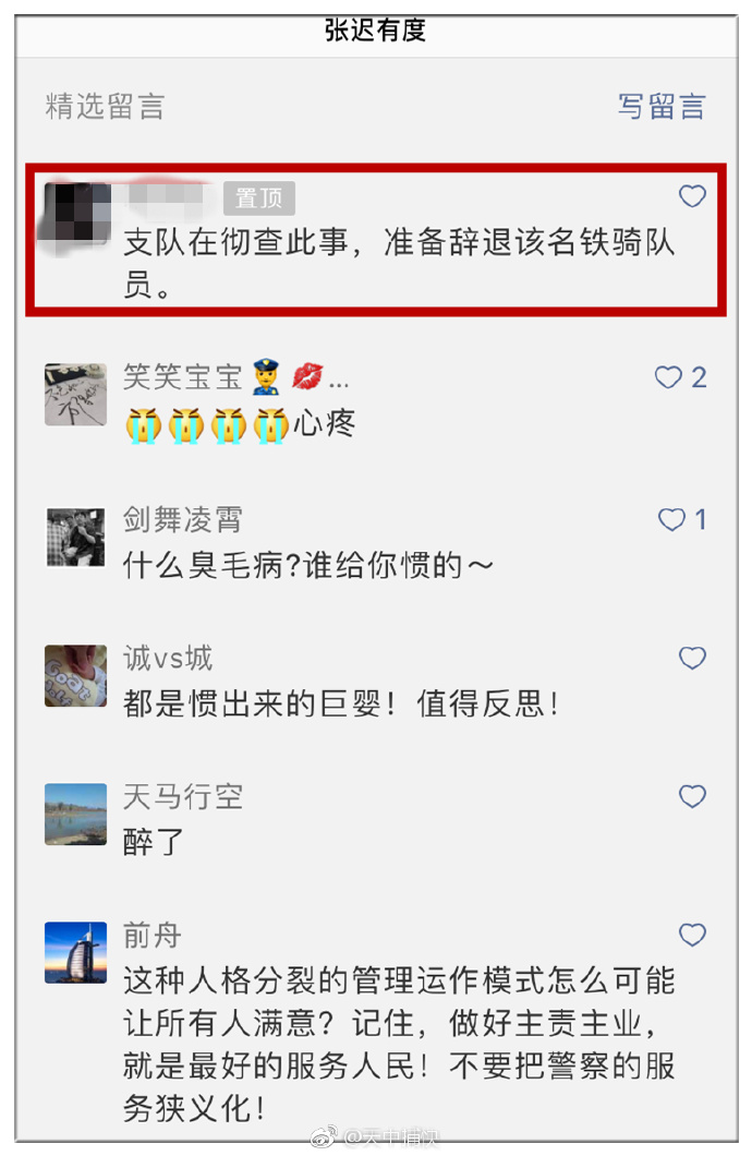 根据@天中捕快微博图片显示,在这篇自媒体号文章的留言区,有网友称,“支队正在彻查此事,准备撤退改名铁骑队员”。