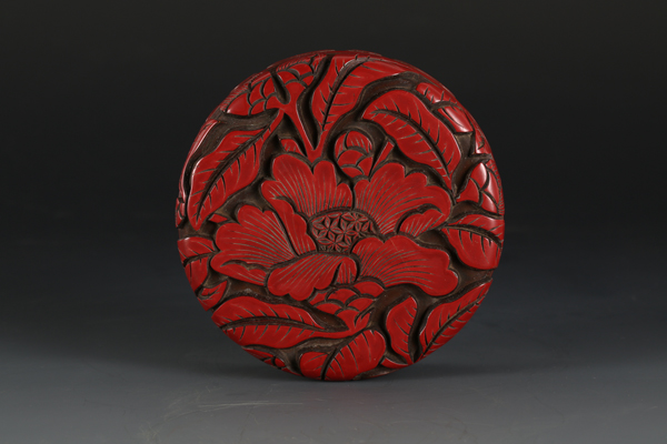 明代红雕漆茶花圆盒,国家二级文物