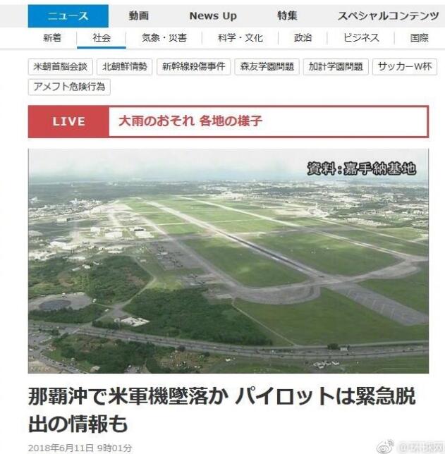 日本NHK消息称,防卫省相关人士透露,当地时间6月11日早6时40分左右,美军驻嘉手纳基地所属一架F-15战机在冲绳那霸市南80公里处坠海。
