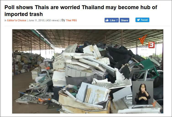 泰国PBS电视台网站11日援引民意调查机构Super Poll负责人的话说,60%的泰国人担心,由于民众缺乏纪律、监管松懈、没有有效的垃圾管理机构等问题,泰国最终恐成为进口危险垃圾的中心。