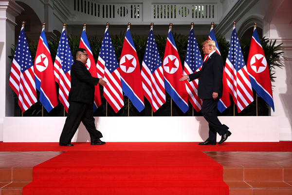美國總統特朗普和朝鮮最高領導人金正恩昨日進行了歷史性的握手,開展了一對一的會談。