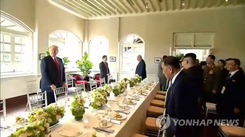 單獨會談后,特朗普對現場媒體說,會談溝通非常好,將通過此次會談攜手金正恩解決「大問題」。隨后朝美雙方又舉行了約1小時40分鐘的擴大會談,就朝鮮半島無核化及和平機制構建交換意見。
