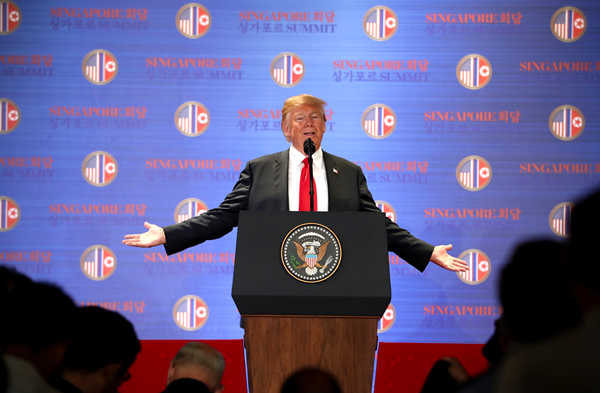 美國總統特朗普昨日在朝美首腦會談記者會上表示,將停止韓美聯合軍演,并在不久后宣告韓戰結束。特朗普指出,軍演開銷巨大,韓國也只是分擔一部分,轟炸機從關島遠赴韓國演練空襲耗資不菲,他不喜歡這樣。但特朗普稱,駐韓美軍問題目前不在討論之列,容后談判,但表示希望未來裁減駐軍以節省開支。