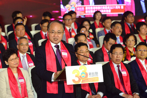 在昨日慶祝香港特別行政區成立21周年暨新界社團聯會成立33周年慶祝酒會上,中聯辦主任王志民致辭時指出,習總書記去年「七一」視察香港時指出,「我們既要把實行社會主義制度的內地建設好,也要把實行資本主義制度的香港建設好」。作為新界地區規模最大、影響力最強的愛國愛港社團,新社聯在「兩個建設好」的偉大進程中必將大有可為。