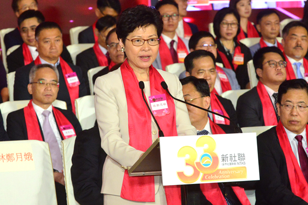 【香港商報网訊】記者林駿強報道:昨日,新界社團聯會舉行慶祝成立33周年酒會,行政長官林鄭月娥、中聯辦主任王志民等應邀作為主禮嘉賓。林鄭月娥於致辭時表示,發展新界是香港未來的大方向,新界也是香港連接大灣區城市群的重要窗口,未來特區政府會進一步加強與新界各地區團體協調合作,讓市民安居樂業。