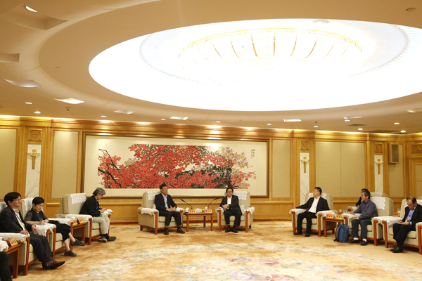 深圳市委常委、宣傳部長李小甘(右四)昨會見世界中文報業協會高層代表團。