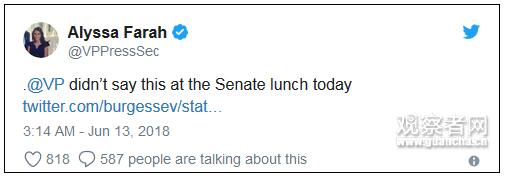 彭斯发言人:“副总统今天没这么说。”
