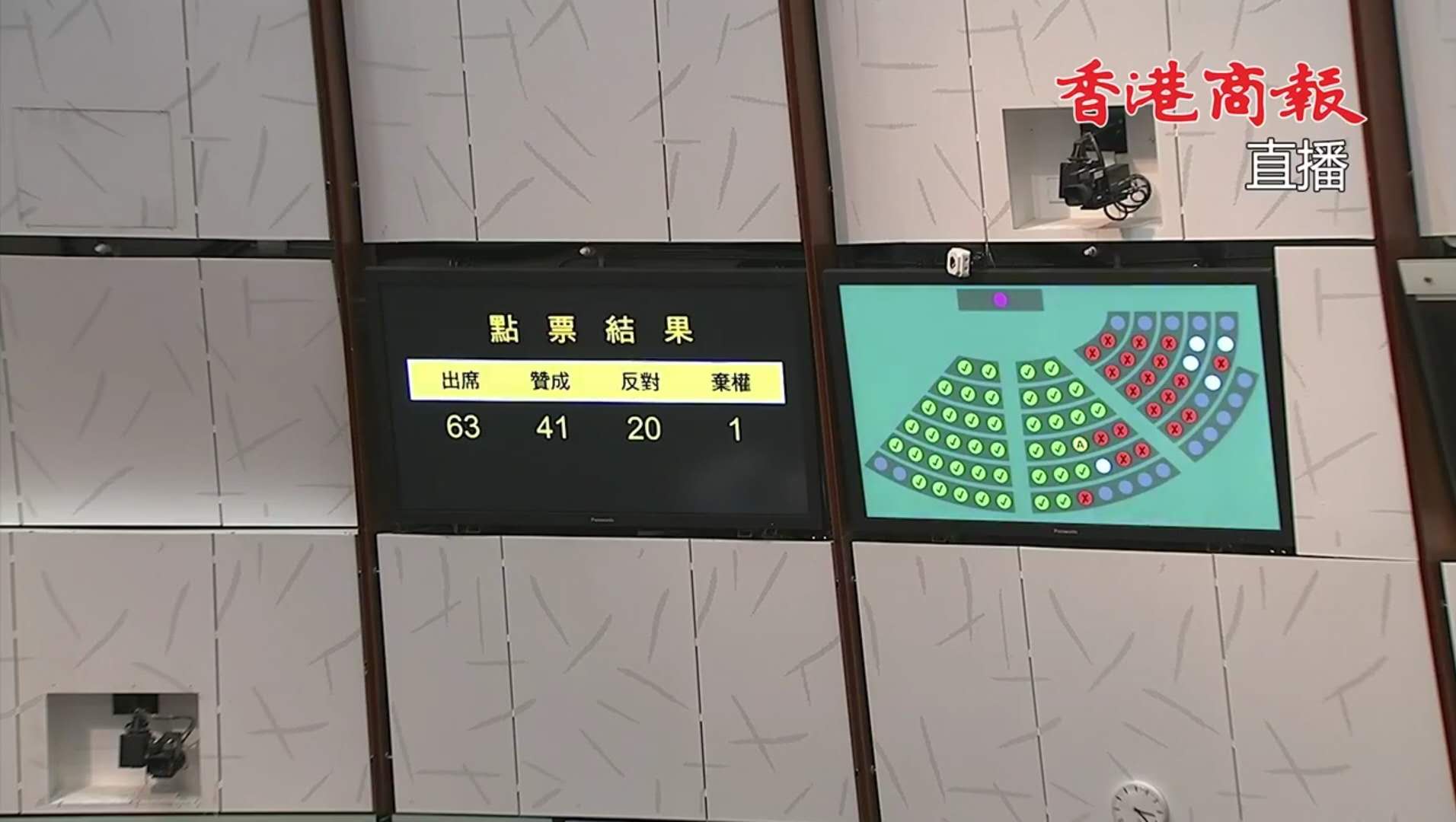 香港立法會13日下午恢復二讀辯論「一地兩檢」草案,最终以41票赞成,20票反对,1票弃权,通过一地两检草案的二读,进入审议草案条文和议员修订的阶段。反對派為阻撓草案進入表決階段,不斷叫囂及試圖衝擊主席台,立法會主席梁君彥多次提醒反對派議員行為不檢,但對方並無理會。幾經勸喻不果後,最終5人仍被保安帶走或抬走。