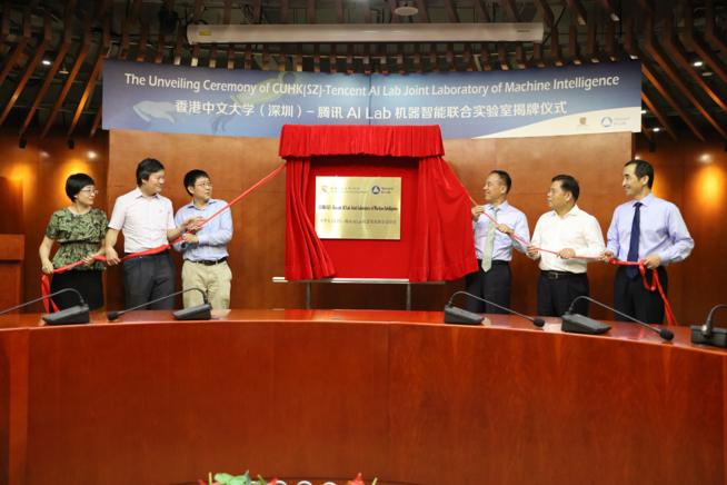 【香港商报网讯】记者林丽青、见习记者王静抒报道:香港中文大学(深圳)-腾讯AI Lab机器智能联合实验室12日揭牌成立。联合实验室将发挥双方优势,通过联合培养博士生、联合研究等多种形式,在机器学习、计算机视觉和自然语言处理等机器智能领域开展深度合作,构建国际一流产学研一体化创新体系和完备的生态系统。