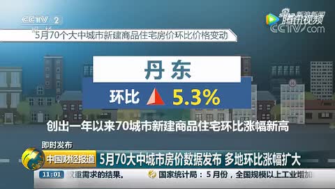 从5月70个大中城市新建商品住宅房价环比榜看,丹东连续两个月领涨,5月环比上涨5.3%,创出一年以来70城市新建商品住宅环比涨幅新高。