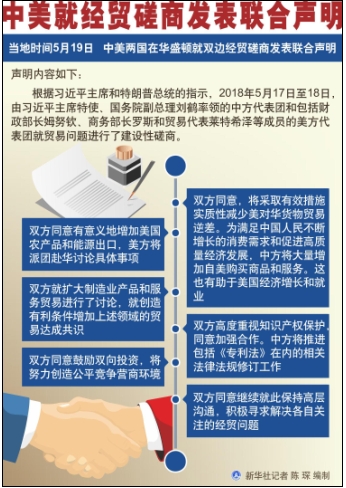 磋商成果據當地時間5月19日發表的中美兩國在華盛頓經貿磋商聯合聲明