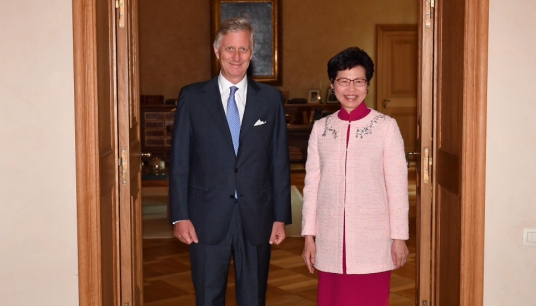 林鄭月娥(右)在布魯塞爾拜會比利時國王菲利普(左)。