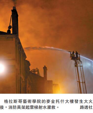報道稱,格拉斯哥藝術學院的麥金托什大樓,當日深夜11時許起火,火勢猛烈並冒出大量濃煙,波及附近的夜店及音樂場地。有學生逃出校園,部分人剛於當日舉行畢業禮。消防局出動超過120人到場灌救,大火到昨天早上仍未撲滅,但已經受控。消防形容,大樓損毀嚴重,所有樓層都受破壞。受到事故影響,整座學院都要關閉,而周圍一帶的道路也要封閉。