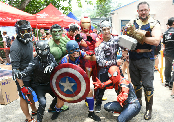赤柱龙舟赛有参赛健儿打扮成美国超级英雄。