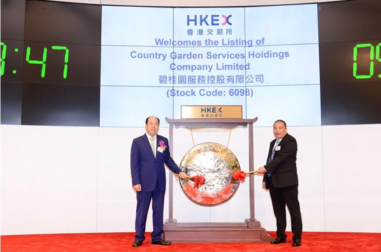 【香港商报网讯】记者黄裕勇报道:6月19日上午9时30分,伴随着一声清脆的锣鸣声,碧桂园服务(HK.6098)正式在港交所主板挂牌上市,开始交易。碧桂园服务以介绍形式登陆港股,开市价格录得每股10港元,总市值最高达到250亿港元,登上港股物业服务板块第一的位置。此举也标志着去年合同销售额最高房企碧桂园的物业板块正式独立迈入国际资本市场。