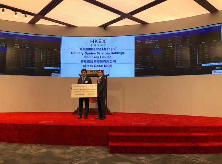碧桂园服务执行董事兼总经理李长江向港交所捐赠公益金.