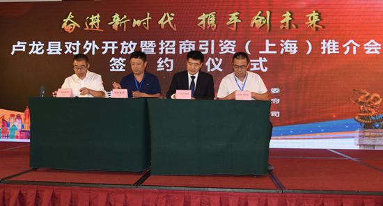 今天,“奋进新时代 携手创未来”卢龙县对外开放暨招商引资(上海)推介会在上海举行。80余家上海、苏州等地的知名企业和6家县内企业近100名企业家参加,总投资202亿元的7个重点项目在会上成功签约。