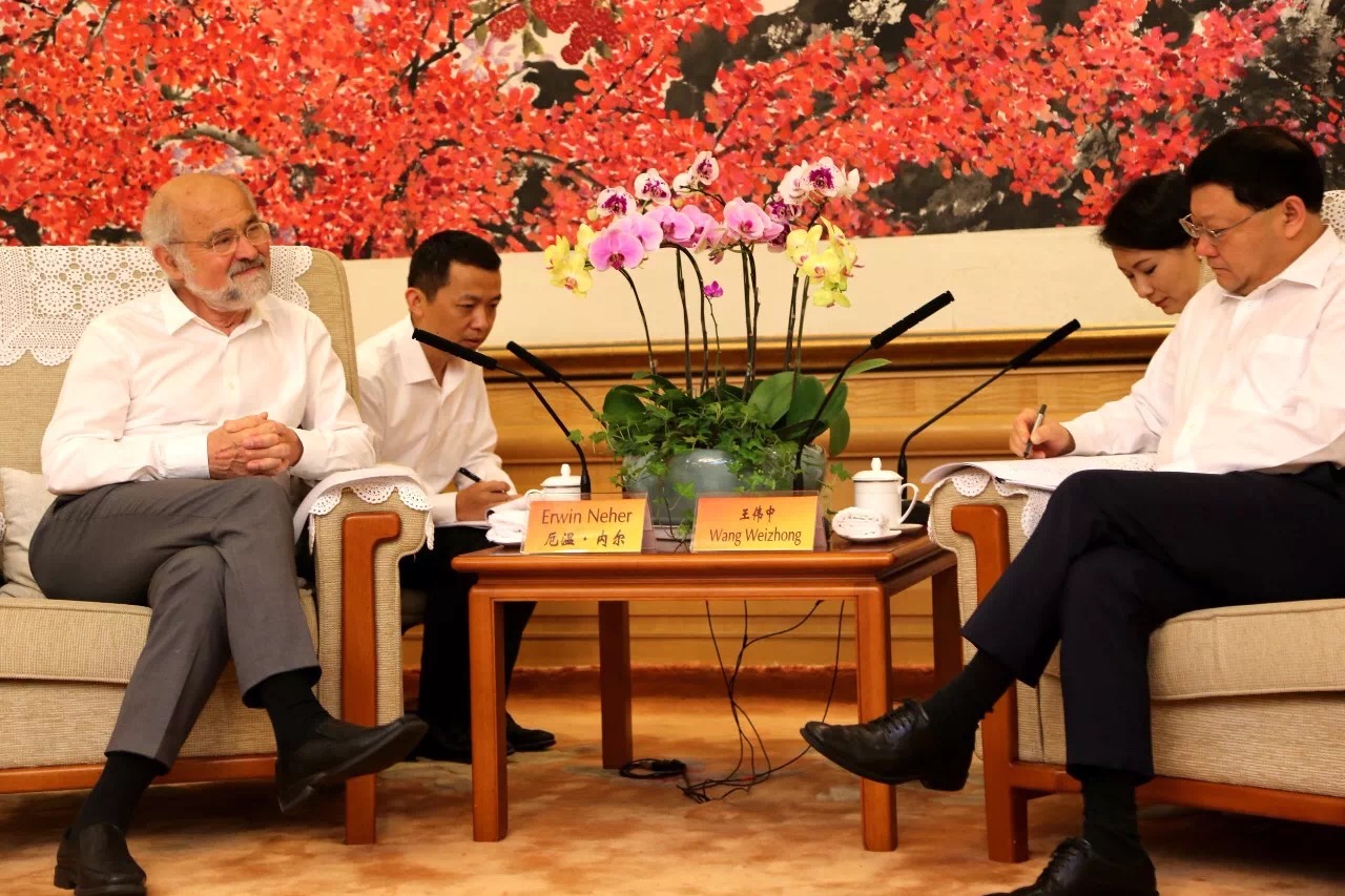 21日,广东省委常委、深圳市委书记王伟中会见了诺贝尔生理学或医学奖得者厄温·内尔及其夫人一行。王伟中表示,深圳正不断加大基础研究和应用基础研究的支持力度,着力构建基础研究+技术攻关+成果产业化+科技经融全过程创新生态链,希望借助厄温·内尔教授团队在神经学及细胞生物学方面的影响力,进一步提升深圳在脑科学领域科研水平,助力深圳加快建设可持续发展的全球创新之都。