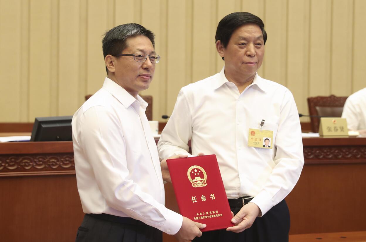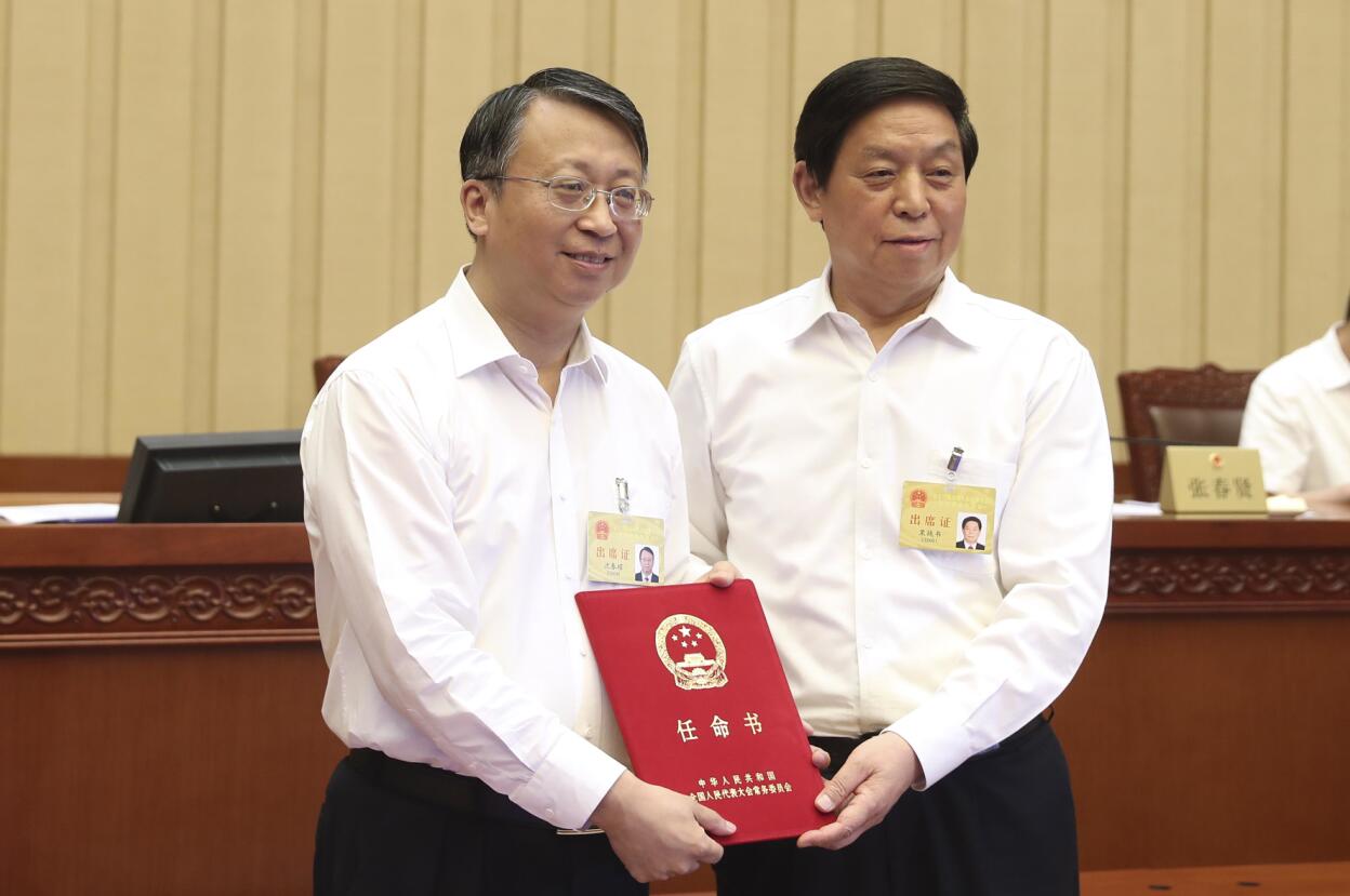 栗戰書向副主任张勇頒發任命書。