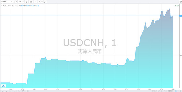 离岸人民币兑美元亚市早盘跌逾150点,报6.5256,连续八天下跌,为2016年以来最长连跌纪录。