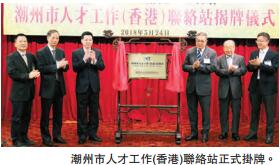 【香港商報网訊】潮州市人才工作(香港)聯絡站挂牌儀式日前假潮州會館舉行,國際潮籍博士聯合會名譽主席陳偉南、主席陳幼南,潮州市委常委、統戰部部長徐和共同主持挂牌儀式,促使聯絡站為更好促進人才交流和資源對接,為潮港兩地的項目合作發揮作用。