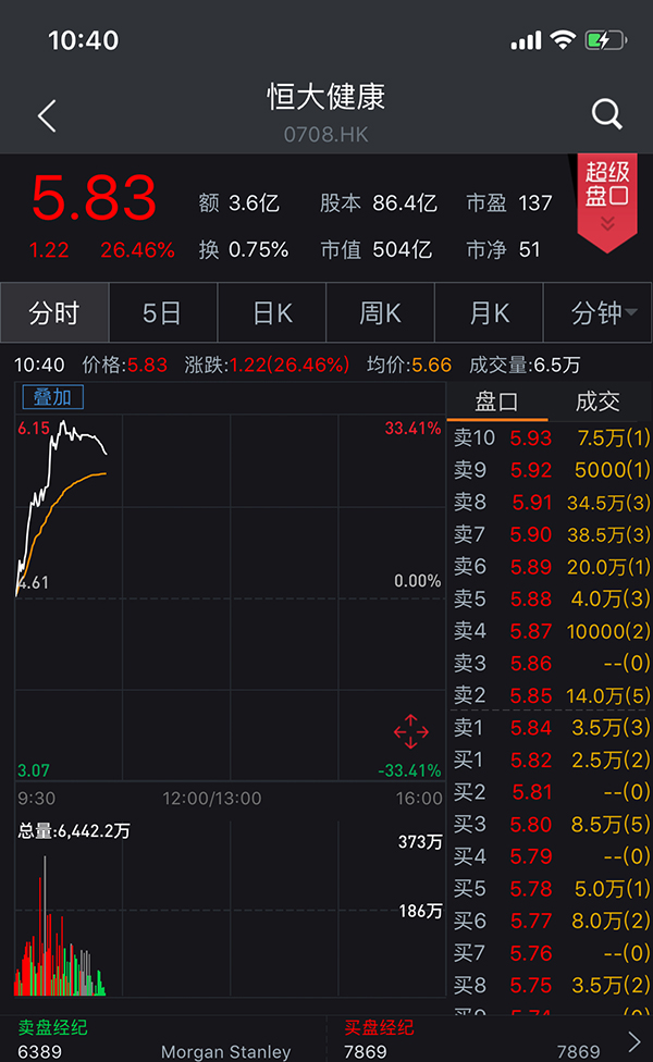 6月26日,恒大健康大涨。