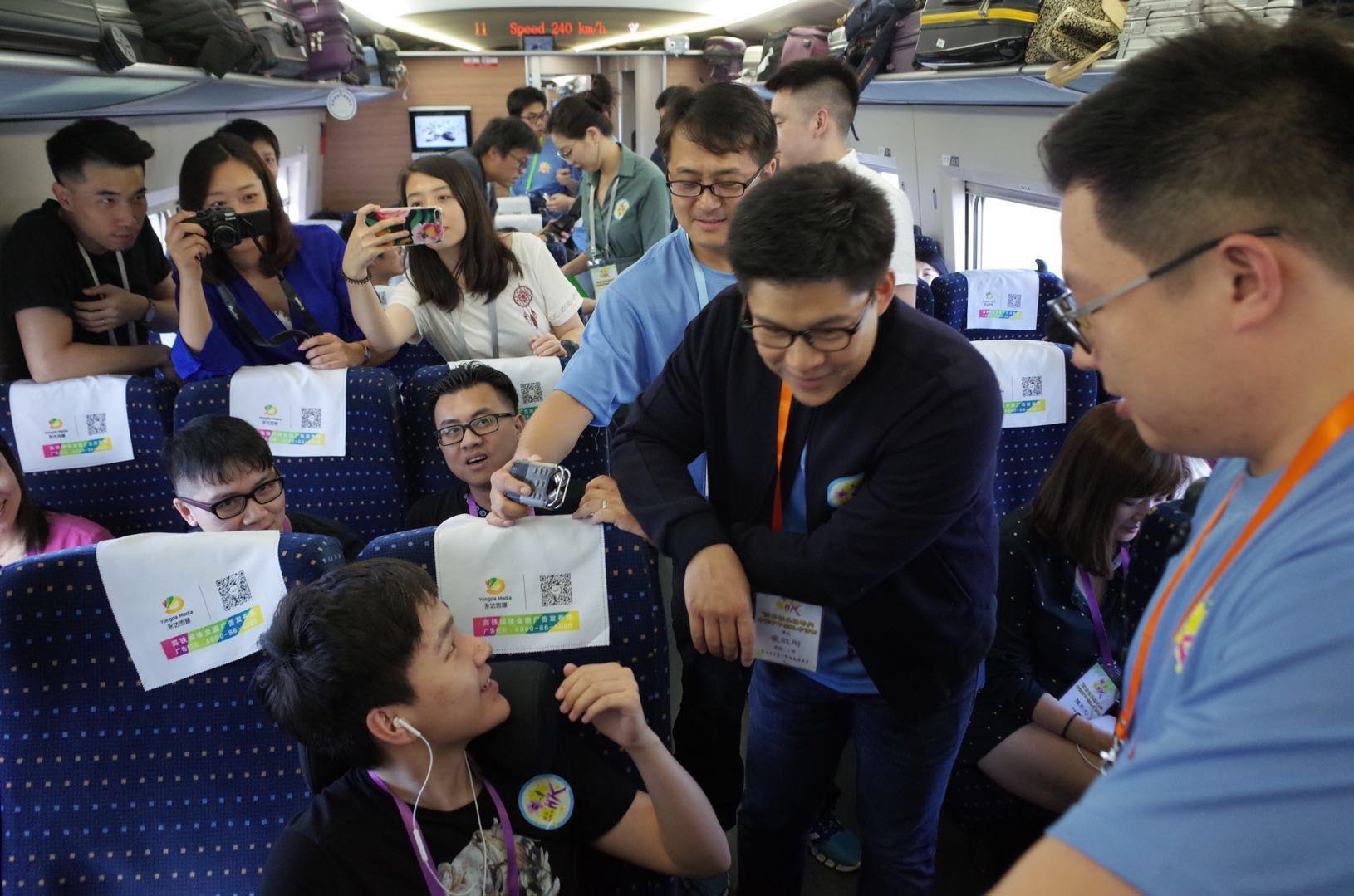 一行150人的「國家發展戰略與香港青年機遇」參訪團昨日由深圳北站乘坐高鐵前往武漢,親身感受時速每小時逾300公里的高鐵速度。在高鐵車廂內,團友們除了聆聽列車長和武廣高鐵工程師介紹「和諧號」和武廣高鐵的詳情,又一同唱歌、玩遊戲,分享在今次旅程中的感受,一起歡樂地度過約5小時的車程。