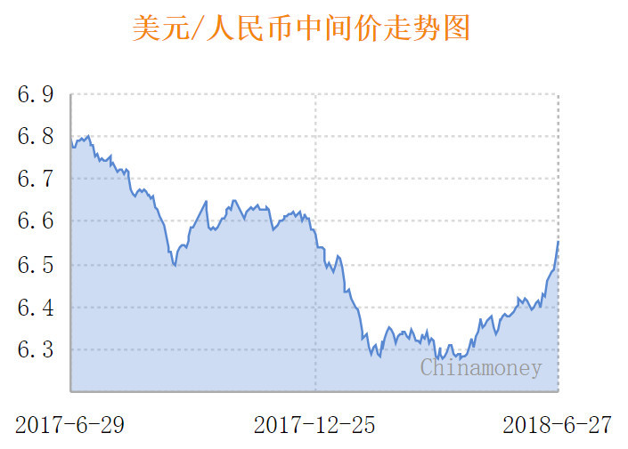 6月27日,人民币中间价连续第6日下调,幅度达389点,降幅创2017年1月9日以来最大。