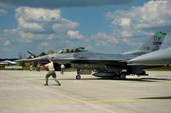 美国国民警卫队空军第180中队的F-16在匈牙利凯奇凯梅特空军基地进行演训