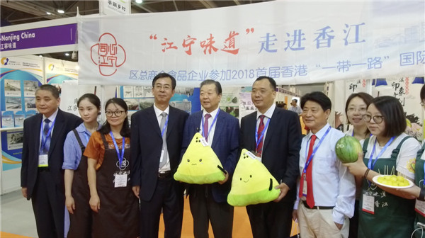 到場嘉賓在江寧食品展區駐足並合影留念。