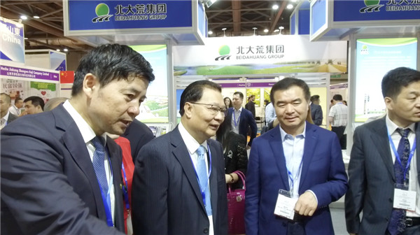 到場嘉賓在北大荒集團展區駐足並合影留念。
