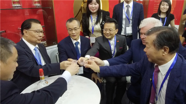 到場嘉賓在五糧液集團展區駐足並合影留念。