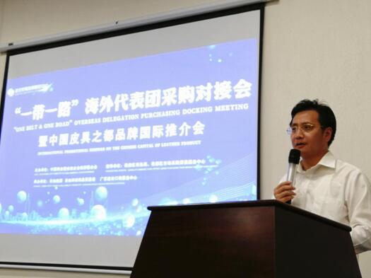 当天下午,在花都国际贸易综合服务中心举行的“一带一路”海外代表团采购对接会暨中国皮具之都品牌推介会上,罗干政等区领导向代表团介绍了花都区近年来的经济社会发展情况,并就花都重点产业及境外合作政策进行了重点推介和宣讲。