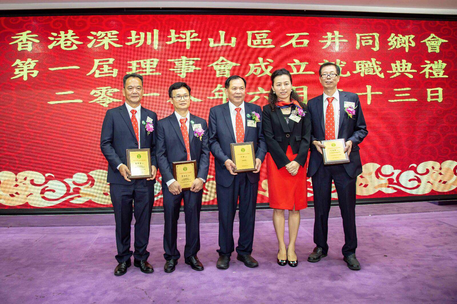 在香港深圳坪山区石井同乡会成立大会上,领导与嘉宾合影