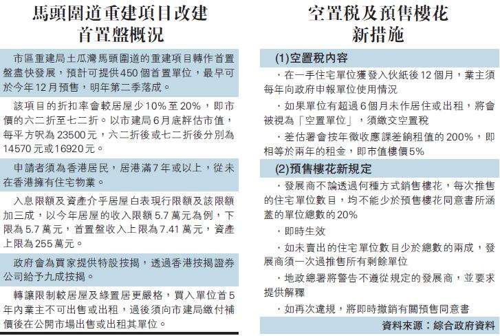 特區政府昨公布多項房屋新政策,包括將居屋定價與市價脫鈎、推出一手樓空置稅等,各界反應傾向正面。