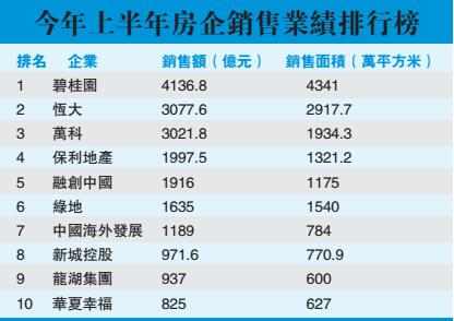 從總體來看,6月主流50家房企單月銷售金額8868億元,環比增長35%,同比增長50%;1-6月累計銷售金額37,251億元,同比增長38%。6月主流50房企銷售面積為6762萬平方米,環比增長9%,同比增長59%,遠好於同期49城同比-11%的表現;1-6月累計銷售面積為29431萬平方米,同比增長36%。