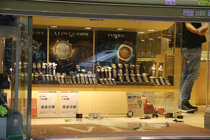 去年9月19日,新港中心地下周生生珠寶行遭3名蒙面南亞匪用大鐵鎚扑毀櫥窗玻璃,掠走9件共值2400萬元的鑽戒及頸鏈珠寶,乘電單車逃走。同年3月10日,蒙面賊人到彌敦道金至尊珠寶店,用21吋長大鐵鎚扑毀櫥窗,7秒鐘內掠走價值526.5萬元巨型鑽戒逃走。