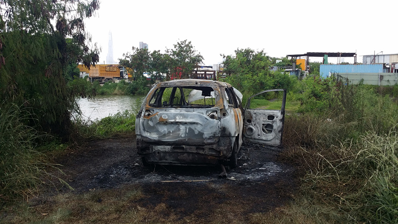 至中午12時許,警方接報在落馬洲坦竿洲路近米埔新村一輛七人車起火,消防救熄後相信起火原因有可疑,警員在現場發現一個燒毀的口罩及打火機,另有目擊者指在起火後,一名男子向青山公路方向逃走,登上一輛的士離開,經調查後相信起火七人車與劫案有關。