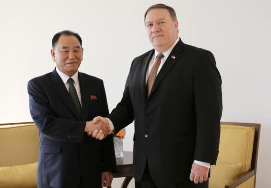 资料图:5月31日蓬佩奥与金英哲在纽约举行会谈