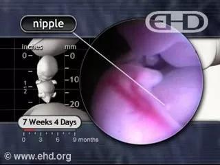 而乳头、乳腺的基因是在常染色体上的,所以这个时期无论男女,都会无差别地长乳头。
