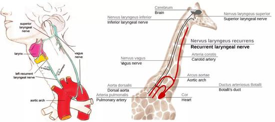 人类应该庆幸脖子短,喉返神经还算没有绕太长的路。