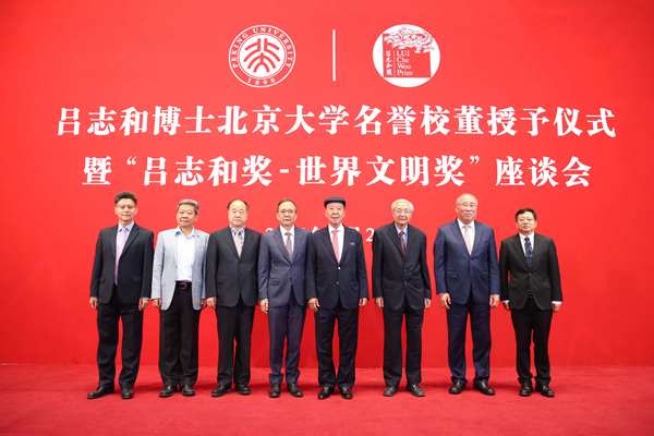 呂志和博士北京大學名譽校董授予儀式暨「呂志和獎」座談會於6月29日在北京大學英傑交流中心舉行,「呂志和獎—世界文明獎」的創辦人呂志和博士,北京大學校長林建華教授,國家科學技術部前部長、「呂志和獎」遴選專責小組成員徐冠華教授,2017年「呂志和獎」持續發展獎獲獎者解振華,「呂志和獎」獎項推薦委員會成員莫言博士,以及多位來自政界、學界的專家學者,以「面向世界——中國在推動可持續發展的角色、機遇和挑戰」為題,與逾200名北大師生共同探討可持續發展的重要性。