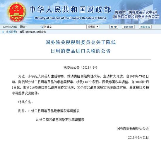 7月1日,中國汽車進口關稅下調政策正式實施,根據財政部發布公告,進口汽車整車稅率降至15%,汽車零部件稅率降至6%。